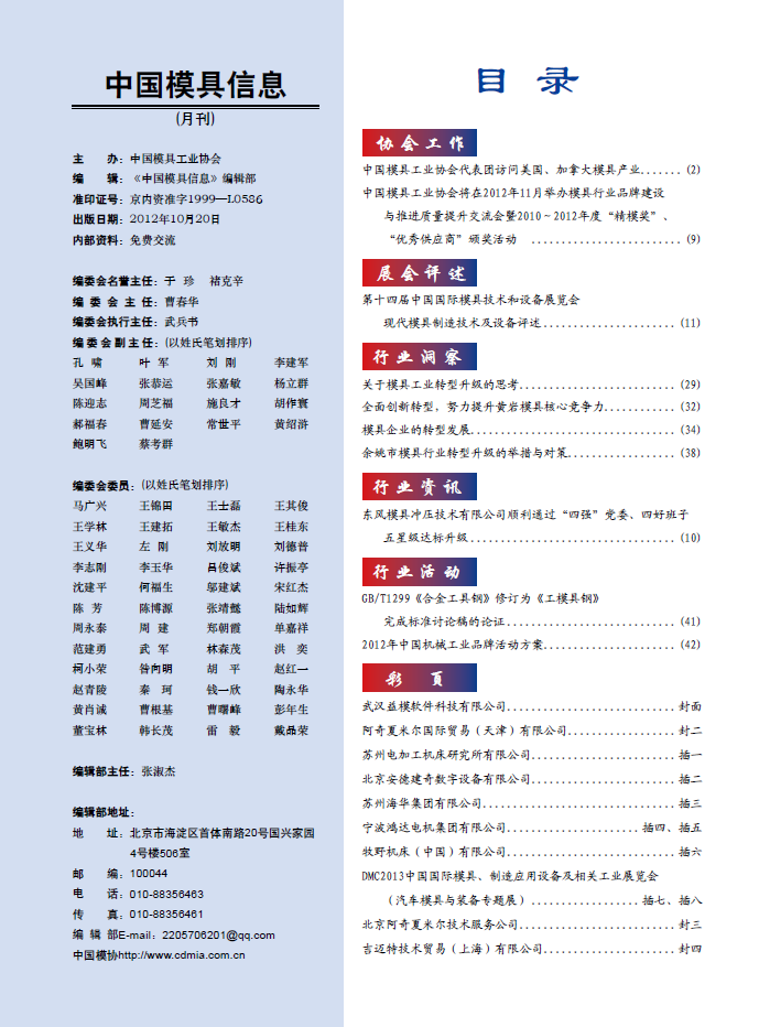 中國模具信息2012年第十期目錄