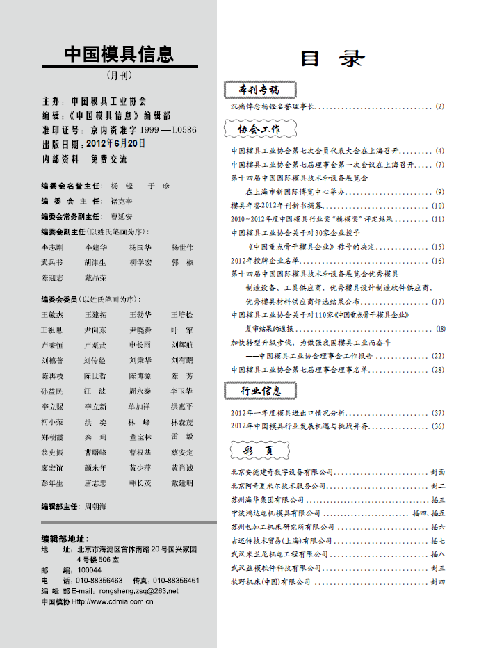 模具行業(yè)“十四五”發(fā)展綱要? ?100元/本? ? ?聯(lián)系電話(huà):010-88356463