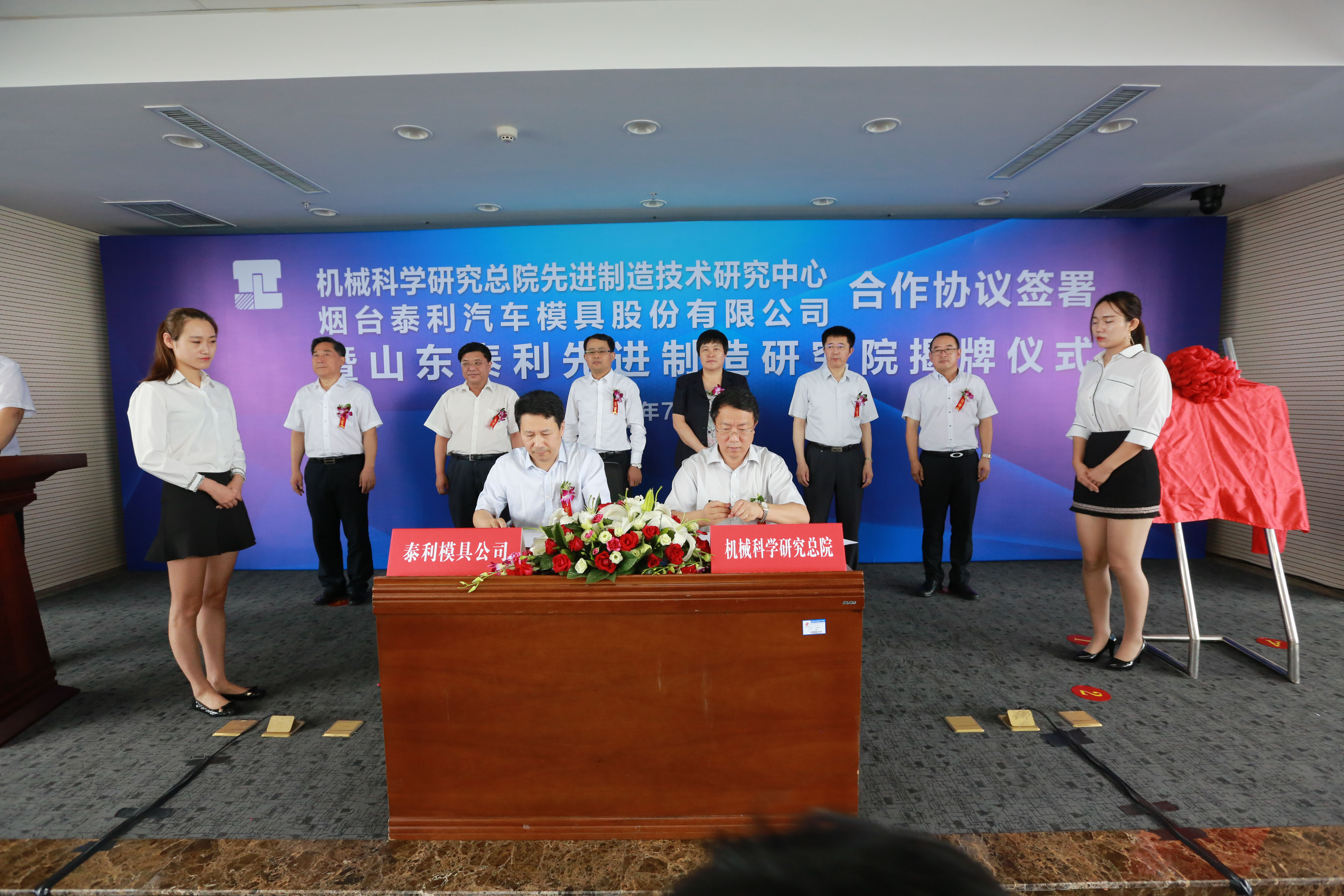 2017年7月28日,“機械科學(xué)研究總院與煙臺泰利汽車(chē)模具公司合作協(xié)議簽署暨山東泰利先進(jìn)制造研究院揭牌儀式”在煙臺高新區政府會(huì )議禮堂隆重舉行。機械科學(xué)研究總院副院長(cháng)單忠德,原山東省機械廳廳長(cháng)方士義,山東省經(jīng)濟與信息化委員會(huì )副主任李莎,煙臺市人大副主任張偉,煙臺高新區工委書(shū)記、管委主任于東,煙臺市經(jīng)濟與信息化委員會(huì )主任劉福生,中國模具工業(yè)協(xié)會(huì )會(huì )長(cháng)武兵書(shū),中科院力學(xué)所首席教授虞鋼,清華大學(xué)教授張林鍹,上海交大教授陳軍,山東大學(xué)教授趙國群,華中科技大學(xué)教授李建軍,兵器工業(yè)五二所特聘首席科學(xué)家曹劍武應邀出席了會(huì )議。煙臺市有關(guān)部門(mén)負責人、煙臺高新區相關(guān)部門(mén)主要負責人,以及有關(guān)行業(yè)協(xié)會(huì )、駐煙高校、合作單位、骨干制造企業(yè)的代表和媒體朋友也出席并見(jiàn)證了這一重要時(shí)刻。